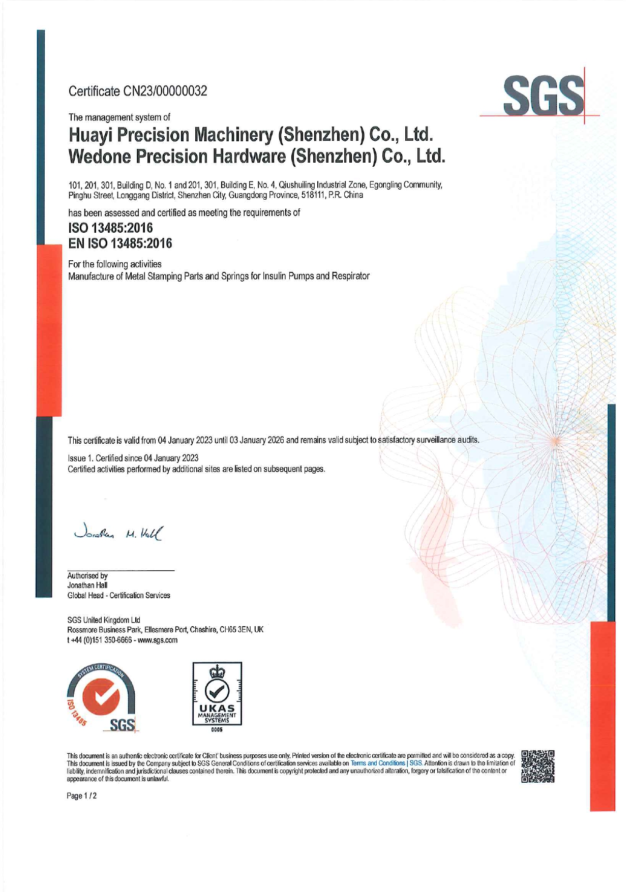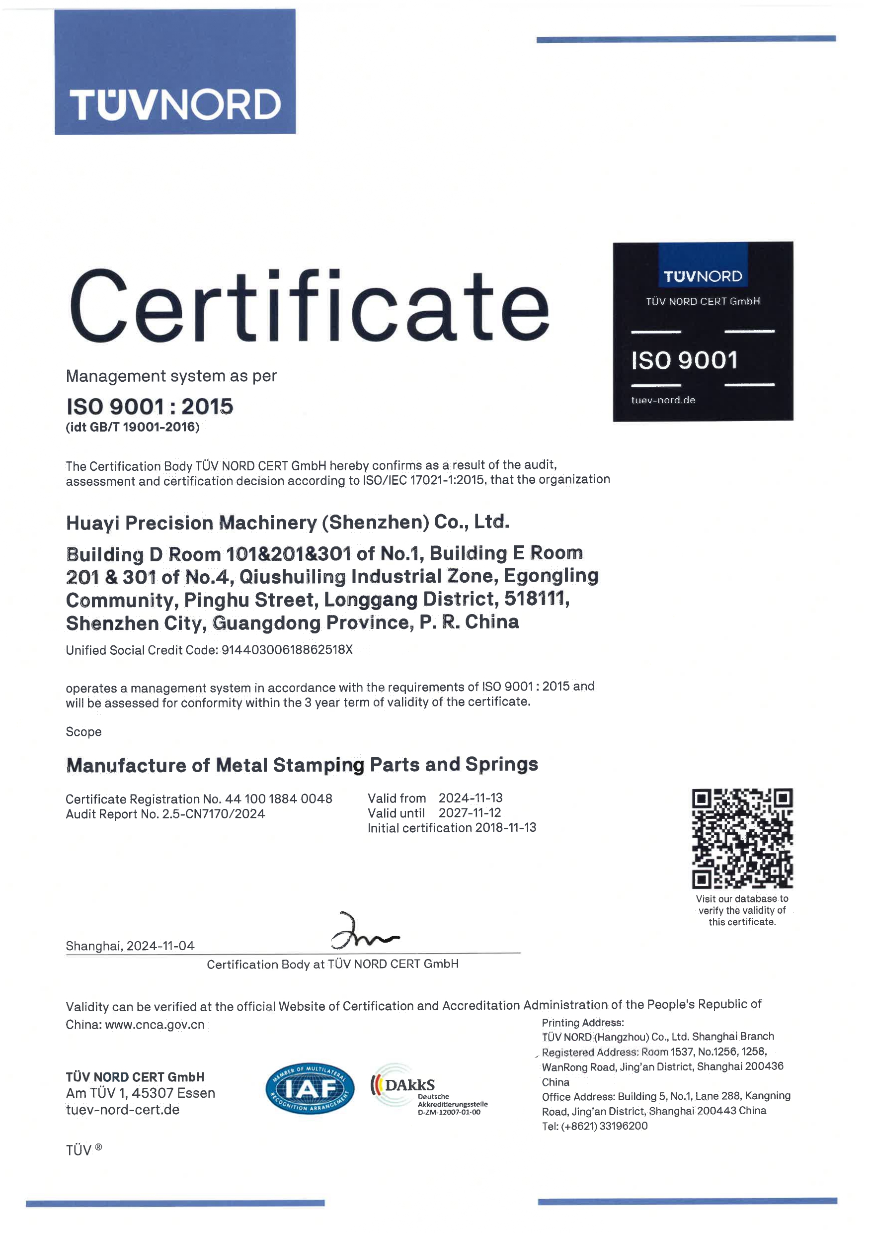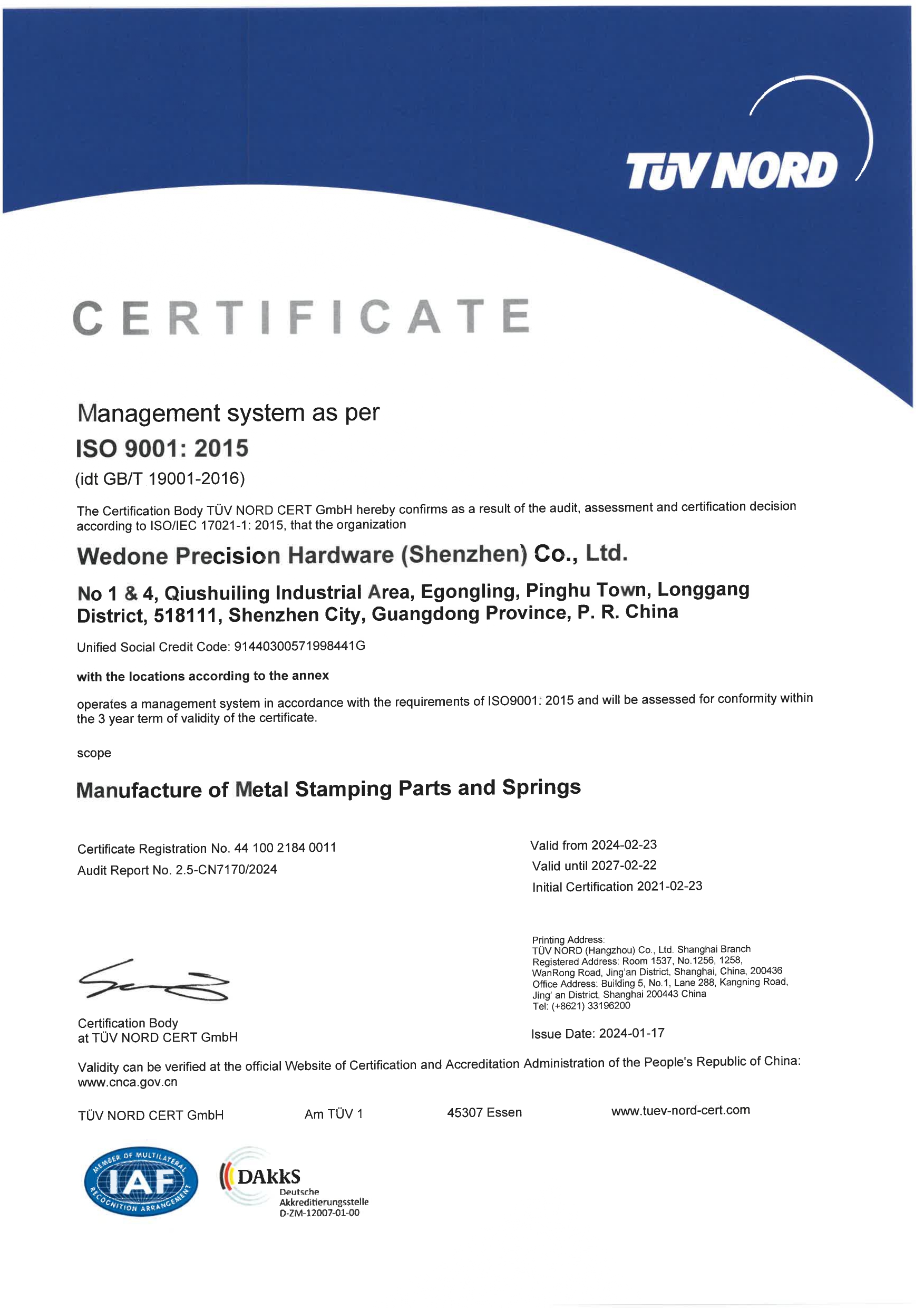 ISO 9001: 2015 英文版證書(偉登深圳)