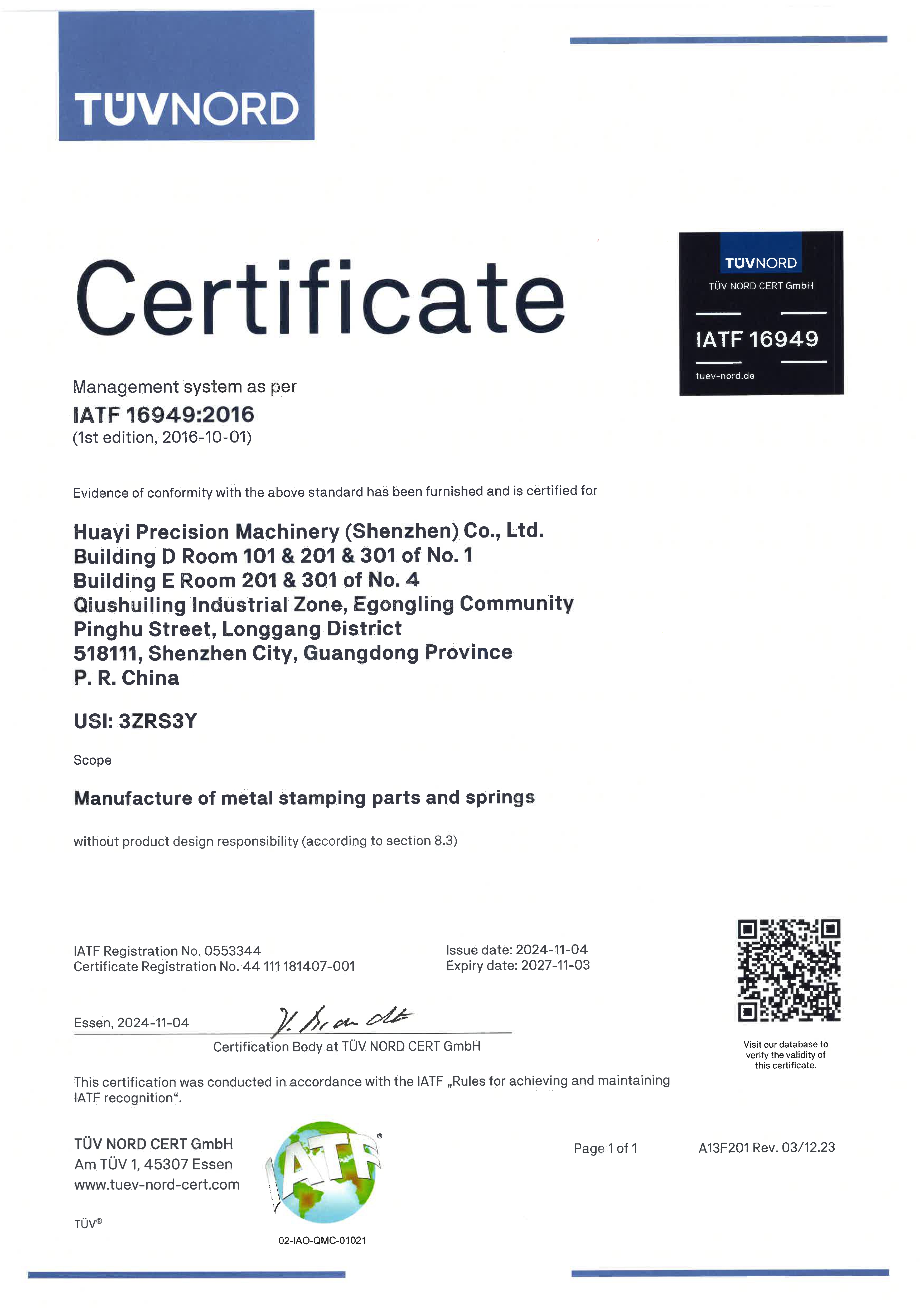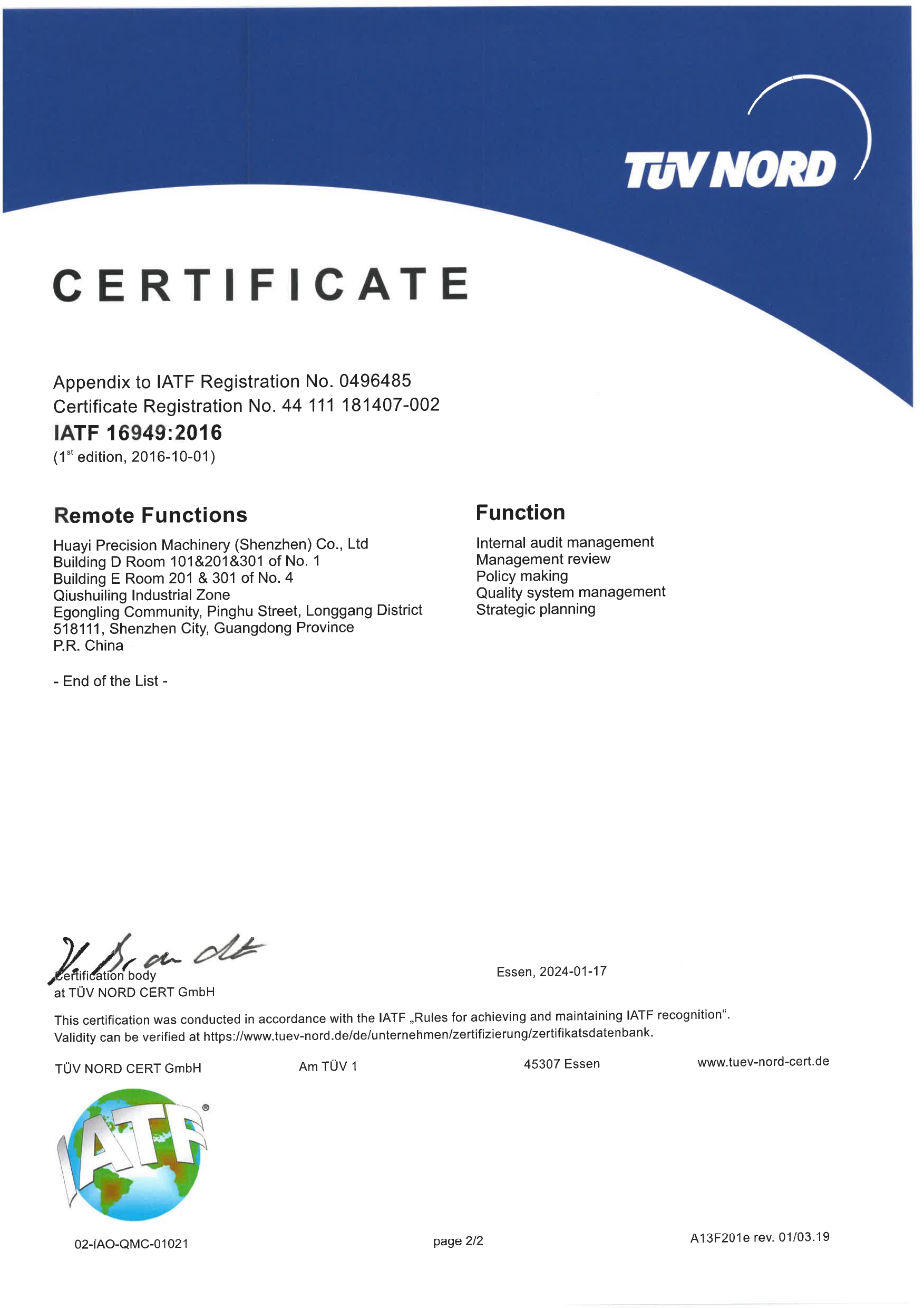 IATF 16949: 2016 英文版證書(偉登深圳)
