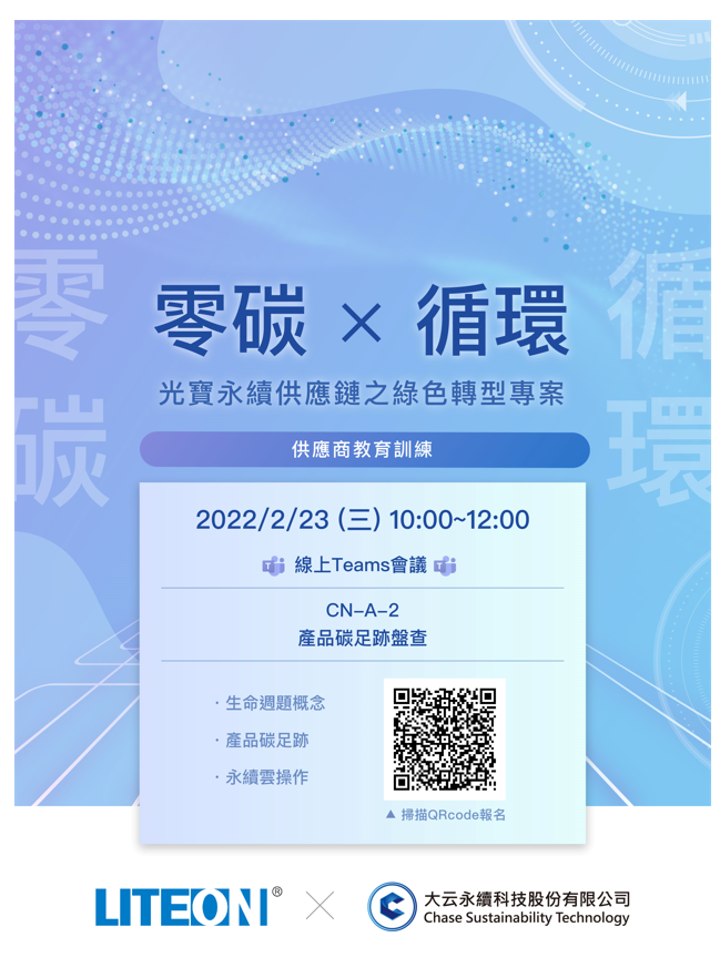 2022年2月16日、23日,客戶光寶科技組織了兩次供應商教育訓練的線上培訓,培訓的主題是:組織溫室氣體盤查、產(chǎn)品碳足跡盤查的基礎(chǔ)知識,永續(xù)云服務平臺針對組織溫室氣體盤查、產(chǎn)品碳足跡盤查的數(shù)據(jù)處理功能的介紹等。公司管理層正努力致力于低碳生產(chǎn),積極參加客戶組織的零碳X循環(huán)培訓,是為進一步推動公司正式導入ISO14067的認證。