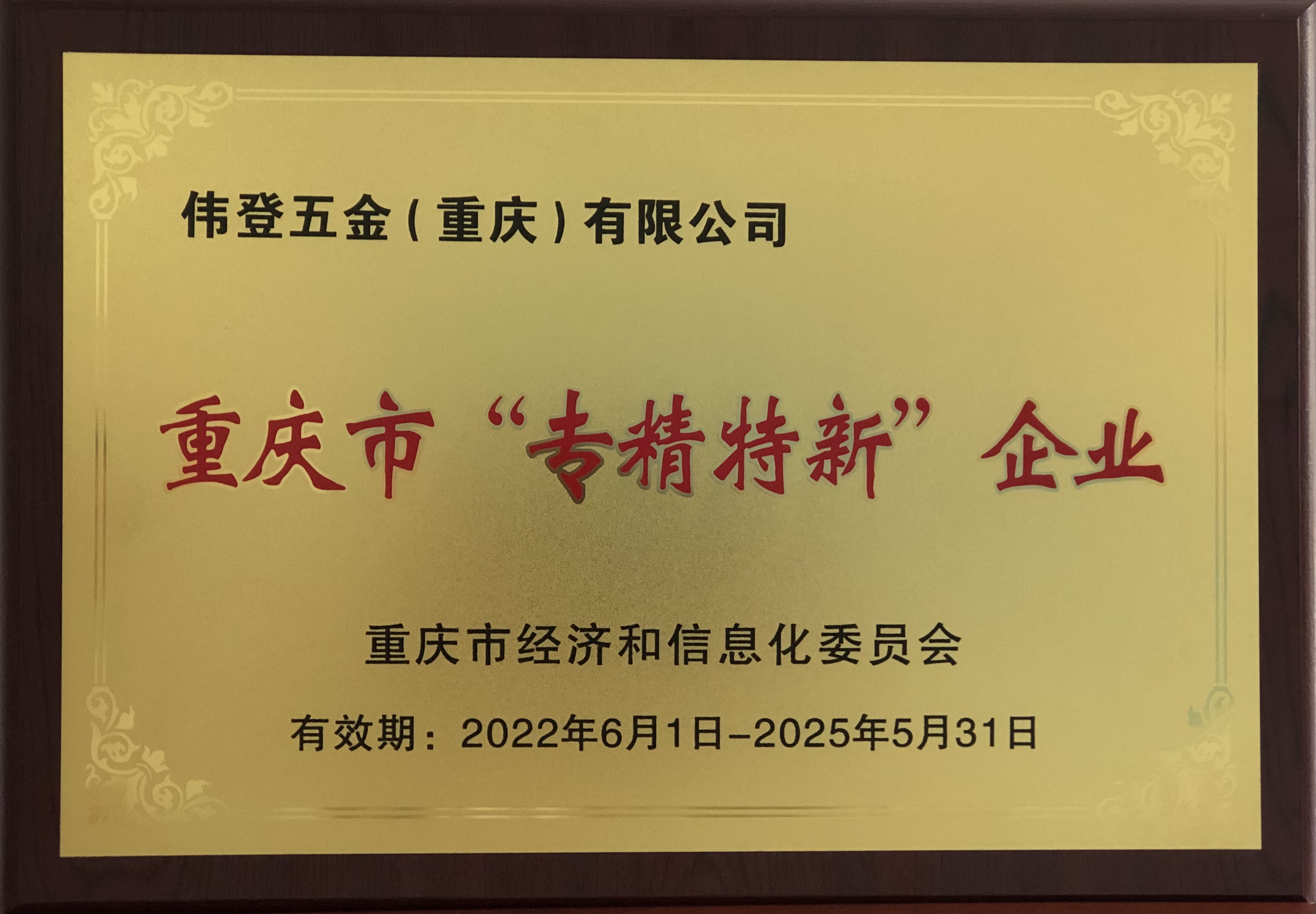2022年6月16日,偉登五金(重慶)有限公司榮獲重慶市2022年度“專精特新”企業(yè)認(rèn)定。